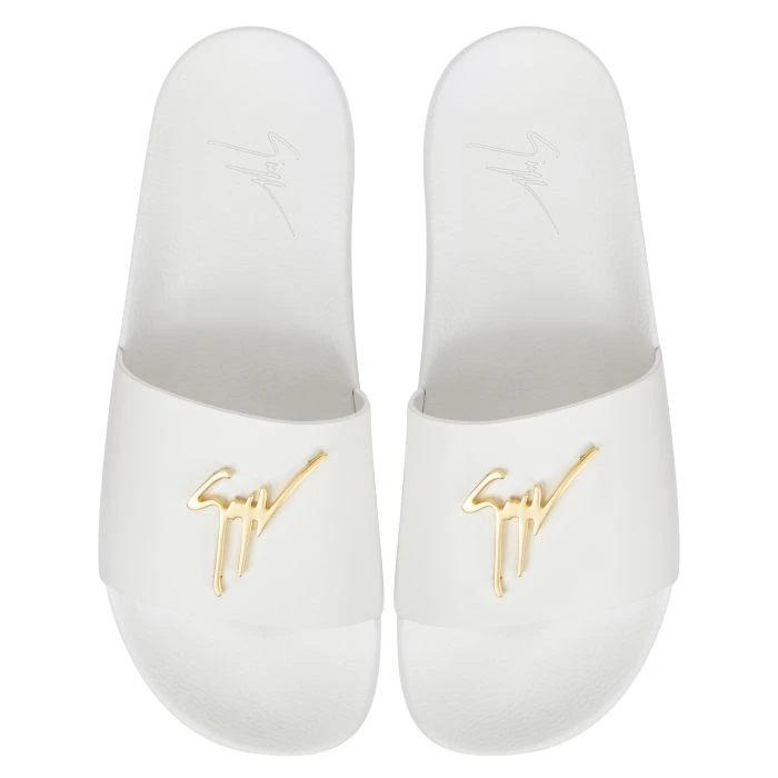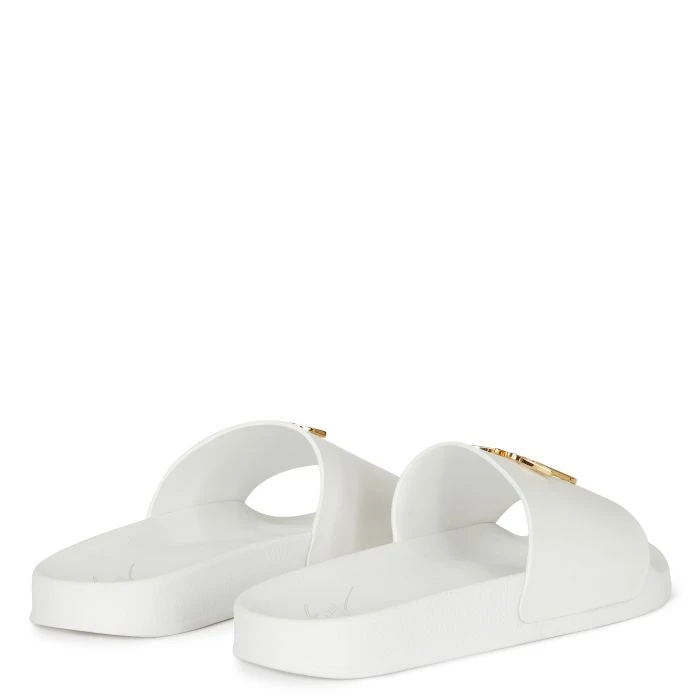 Slider sandals in white leather, with Signature detail and comfortable rubber sole.