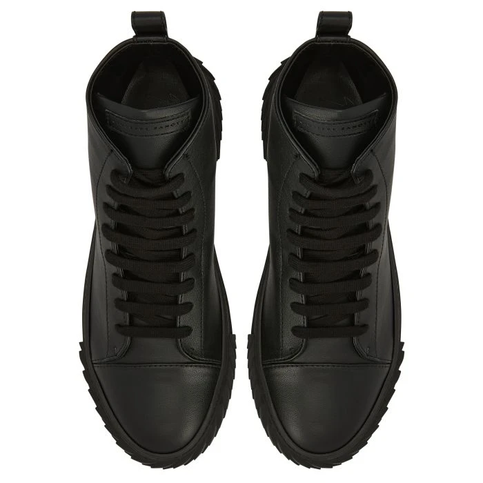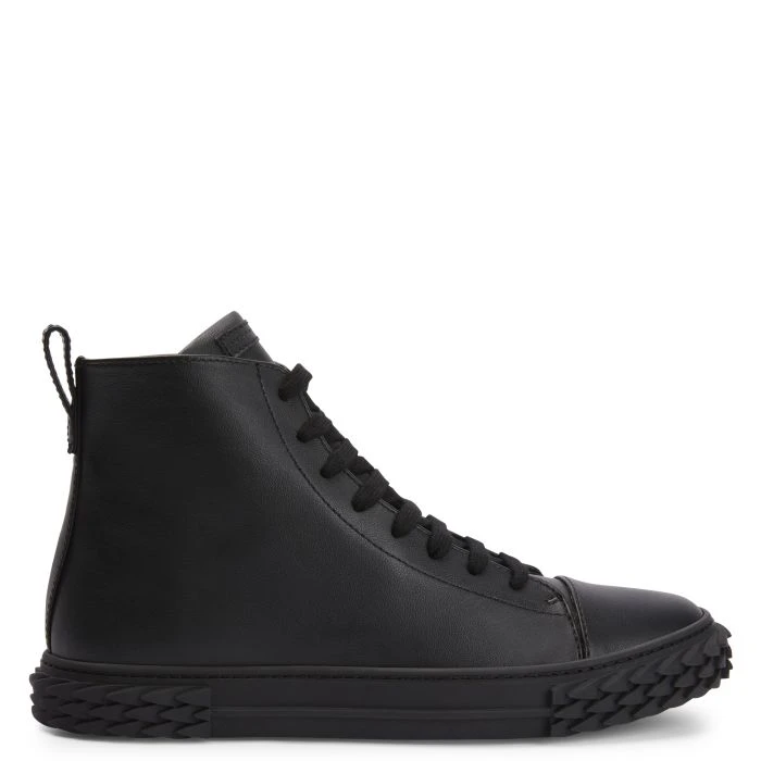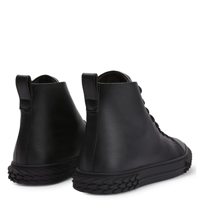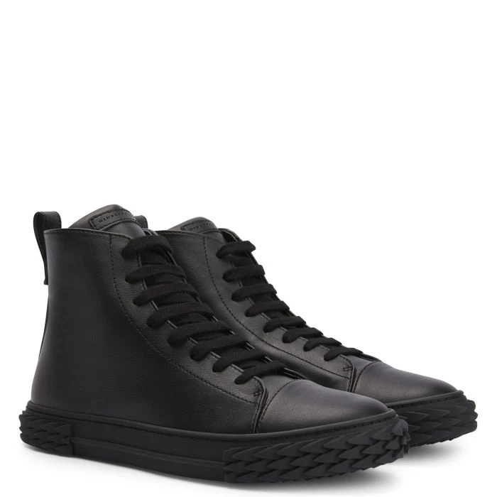 High-top sneakers crafted from black synthetic fabric with matching cotton laces, featuring a tone-on-tone ‘Label Signature’ on the tongue; the eye-catching, black rubber 3D ‘Blabber’ sole gives the design a perfect finish.