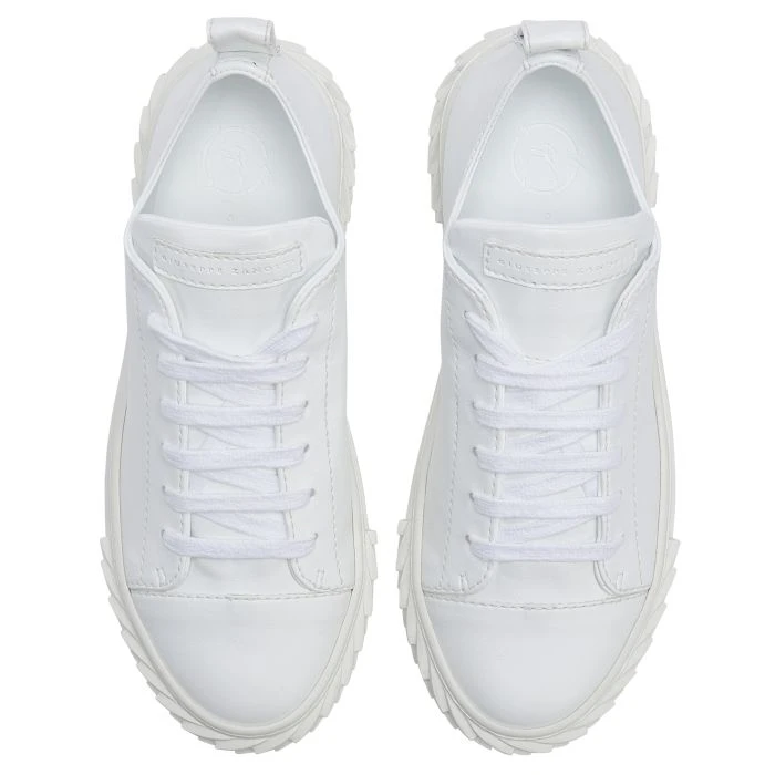 Low-top sneakers crafted from white synthetic fabric with matching cotton laces, featuring a tone-on-tone ‘Label Signature’ on the tongue; the eye-catching, white rubber 3D ‘Blabber’ sole gives the design a perfect finish.