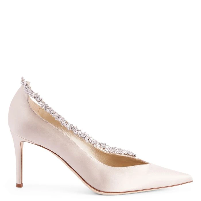 - Blush pink satin upper