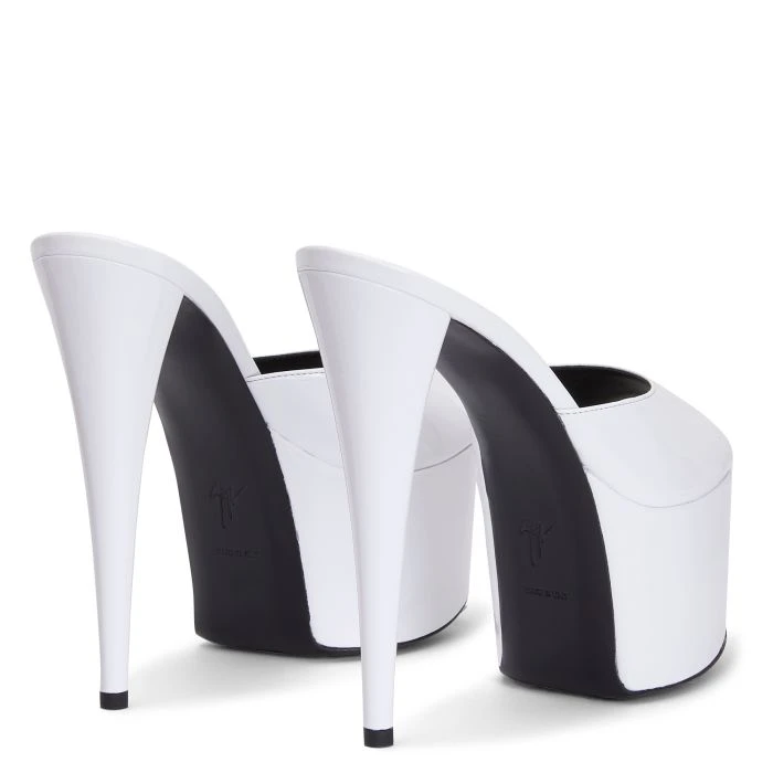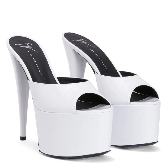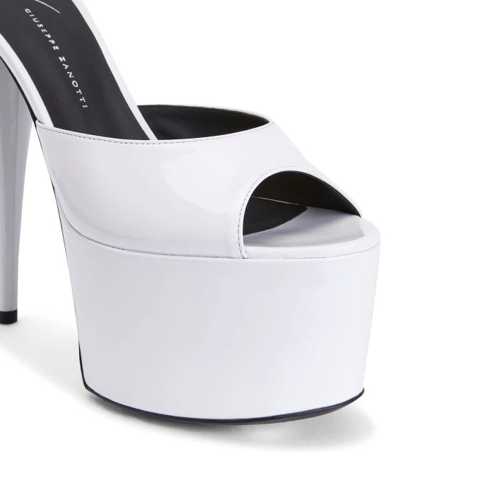- 60 mm platform covered in white patent-effect synthetic fabric