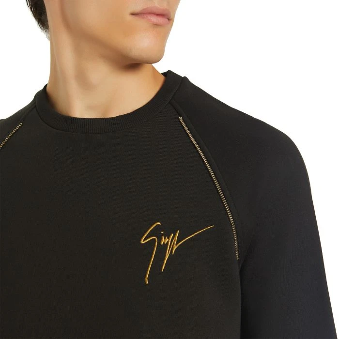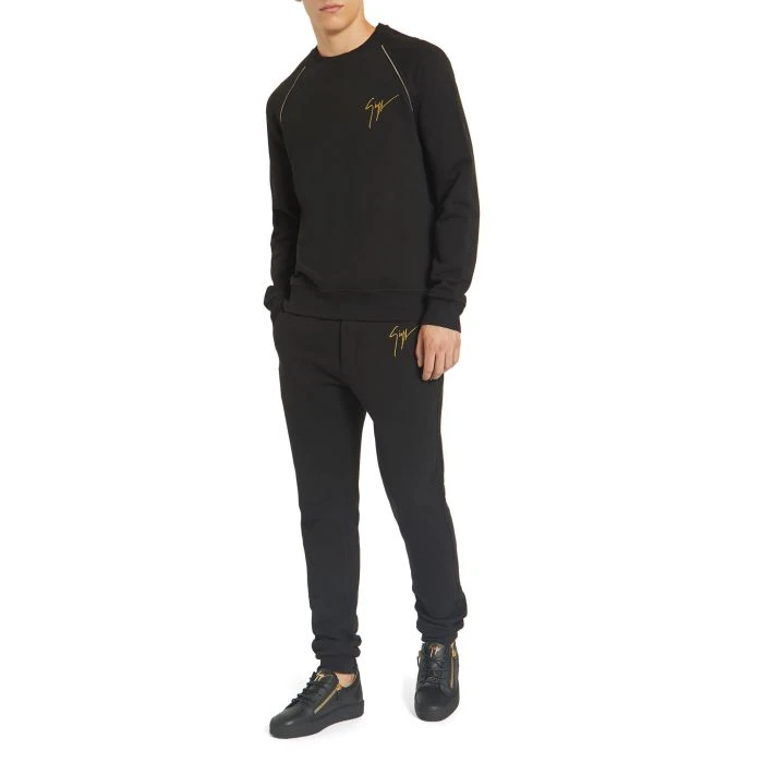“Living Room” is a timeless capsule collection inspired by Giuseppe Zanotti’s life at home during quarantine. This understated crew-neck pullover in supple black cotton features minimalist detailing at the shoulders and the designer’s signature emblazoned on the upper chest corner. It is finished with ribbing at the hem, cuffs and collar. The collection comes in environmentally friendly packaging that is both recyclable.