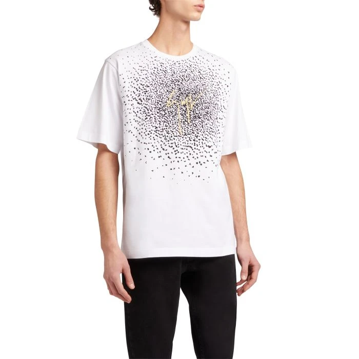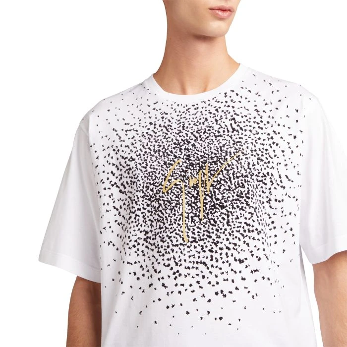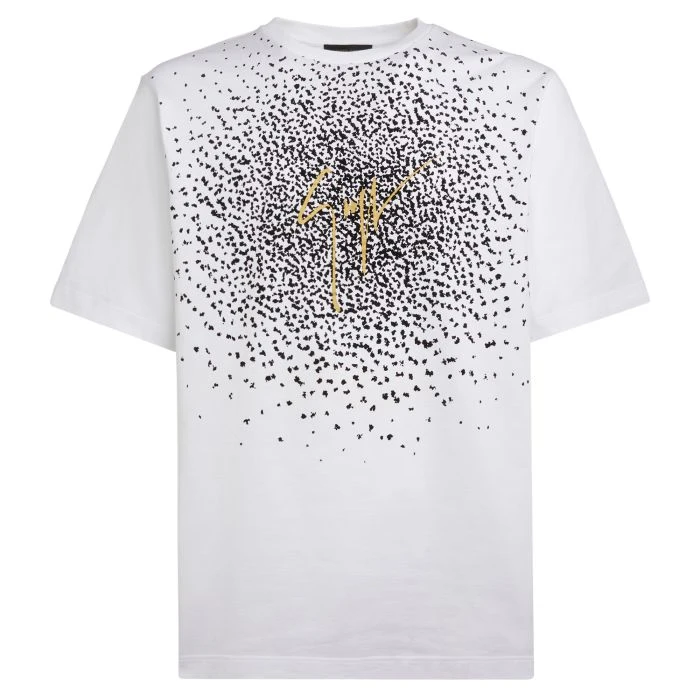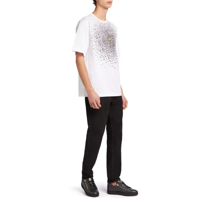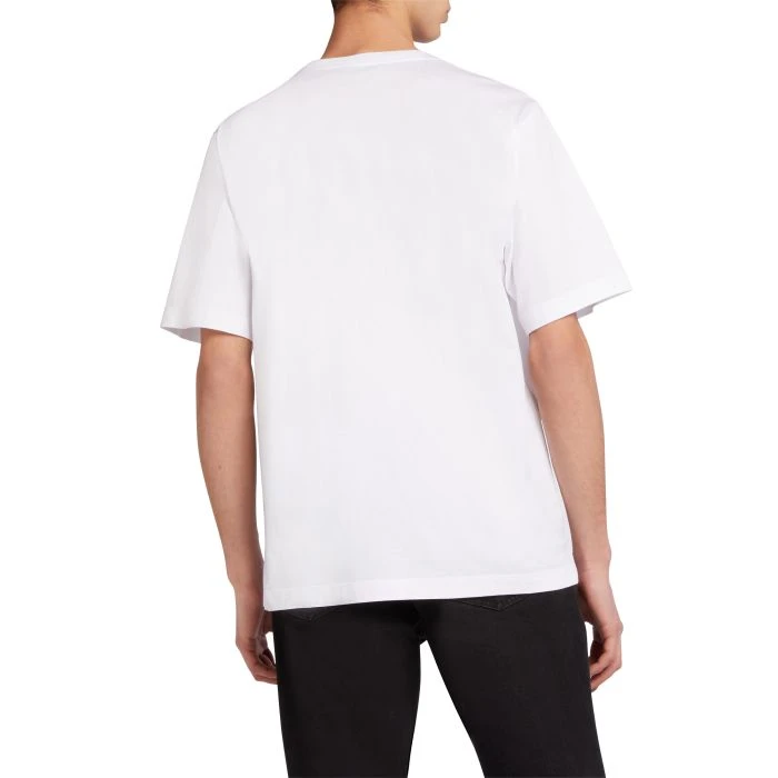 Crew-neck T-shirt crafted from pure white cotton, finished with a contrasting flocked print.