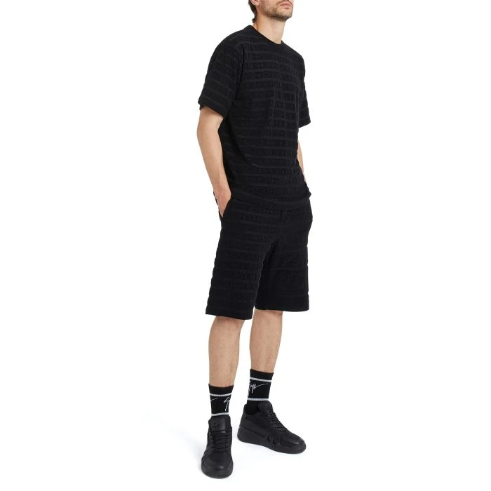 - Black terry cloth fabric with ‘Signature’ details (100% CO)