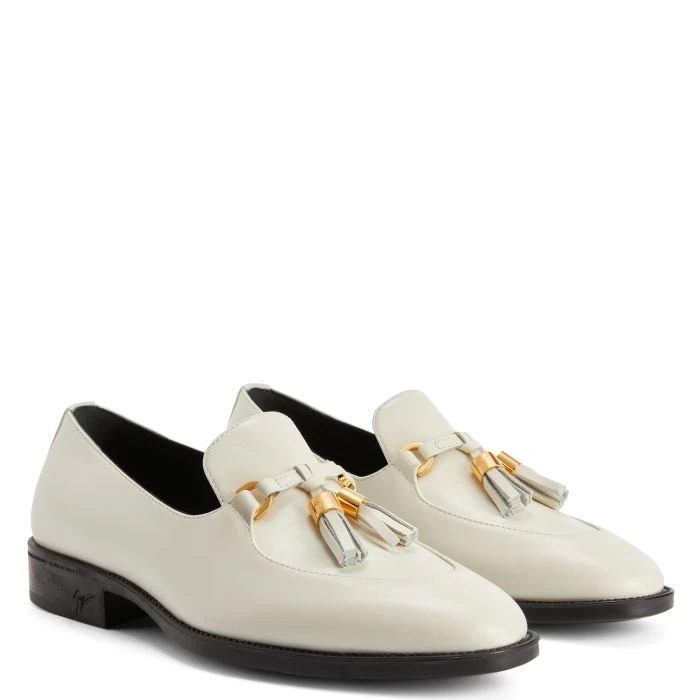 - Off-white leather upper and tassels